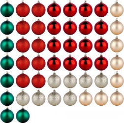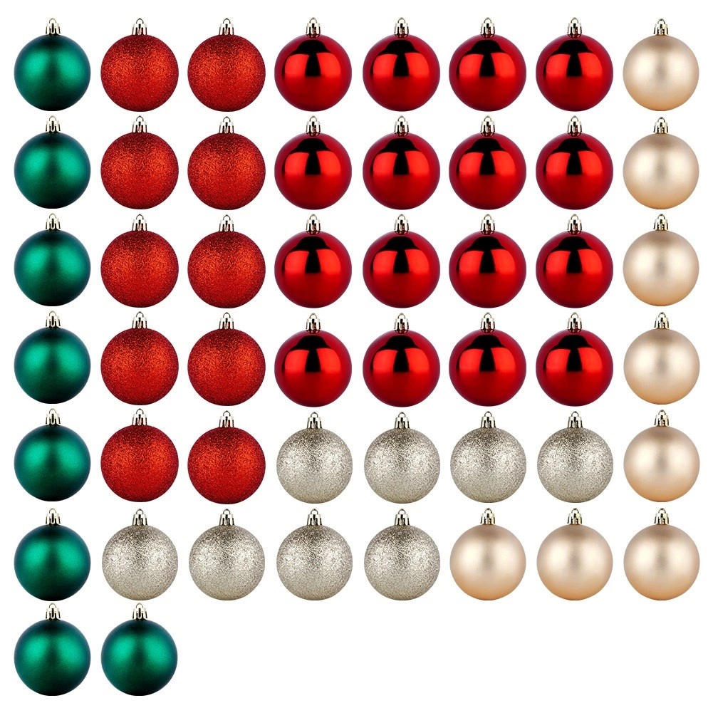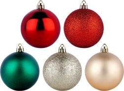 I pakken finder du omhyggeligt afstemte kombinationer for nem dekoration: røde matte og blanke, champagne matte og glitrende samt grønne matte kugler. Takket være den ensartede diameter på 6 cm passer de perfekt sammen og fylder træet fra top til bund.