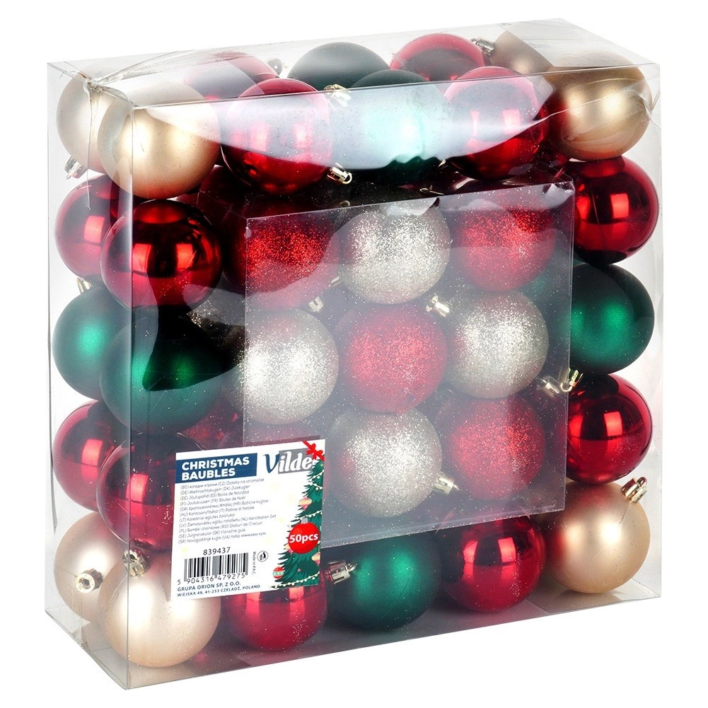 Den elegante blanding af farver og overflader gør det muligt at skabe unik julepynt på træet, i kranse og på guirlander. Det brudsikre design i kvalitetsplast ligner ægte glas, men er let, holdbart og sikkert for hele familien.
