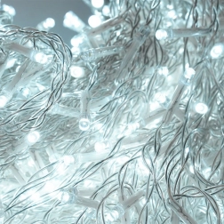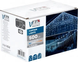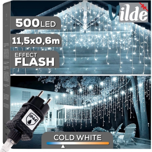 Det stilfulde lyseforhæng med 500 energibesparende LED skaber en fortryllende festlig dekoration på facaden, i pergolaen eller indendørs. De transparente ledninger og de forskellige længder på de hængende grene (35, 40, 45 og 60 cm) giver en realistisk effekt af glitrende istapper, og enkelte dioder blinker svagt for et endnu mere effektfuldt udtryk.