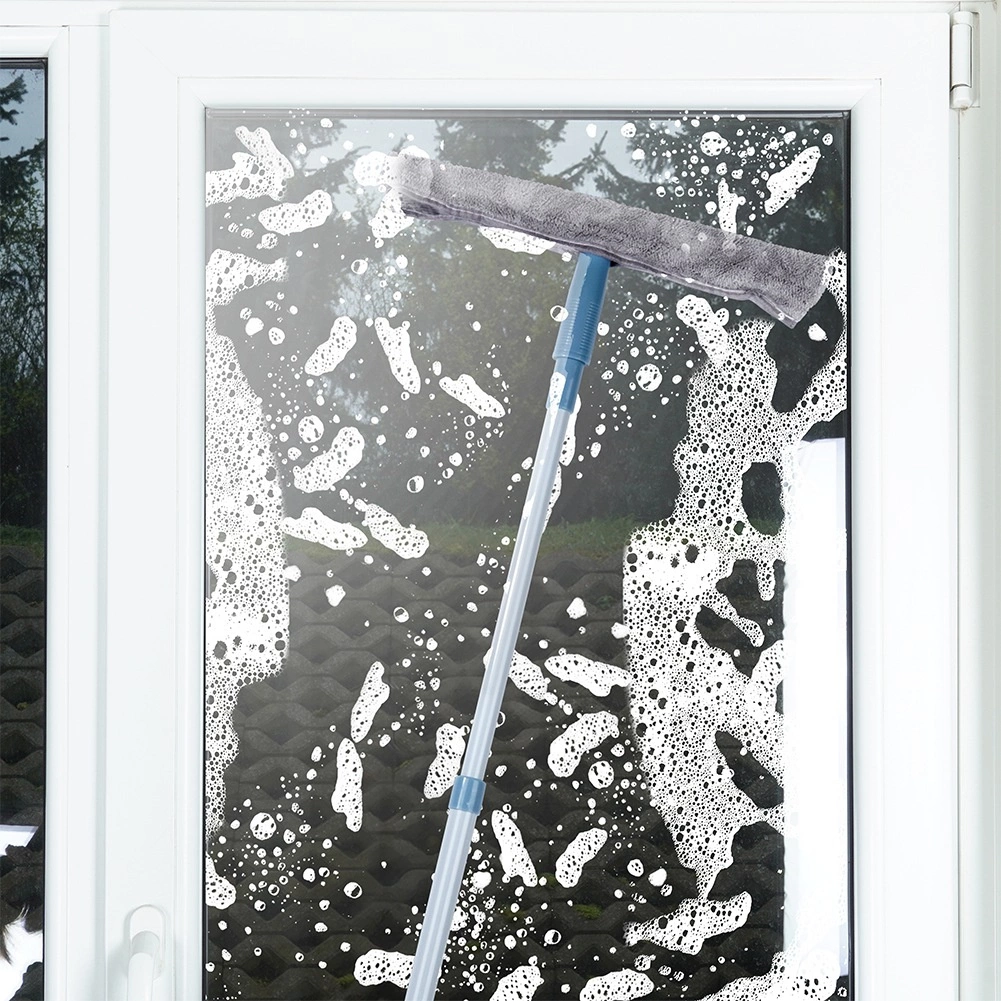 Den lette længdejustering gør det muligt at vaske selv højt placerede vinduer uden stige – komfortabelt og sikkert.