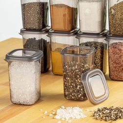Den rektangulære form med afrundede hjørner kan stables. Hold orden i spisekammeret og udnyt pladsen fuldt ud.