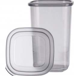 Skab orden i spisekammer og køkkenskabe. Denne høje beholder med et volumen på 450 ml er ideel til kaffe, nødder, pasta, bælgfrugter, morgenmadsprodukter, tørrede svampe og andre tørvarer. Den gennemsigtige krop i gråtone ser moderne ud og giver samtidig øjeblikkelig kontrol af beholdningen.