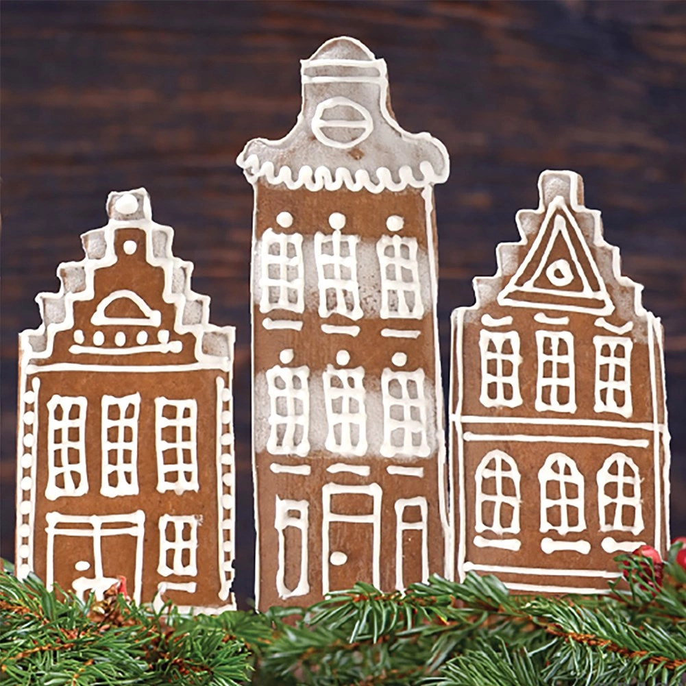 Silhuetten af et “byhus” med markant tag skaber attraktive småkager og honningkager, ideelle til festbordet og gavepakninger.