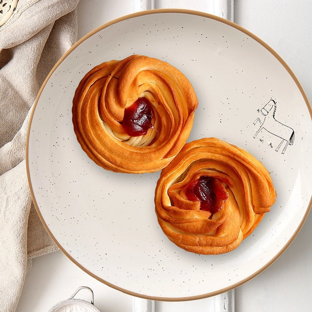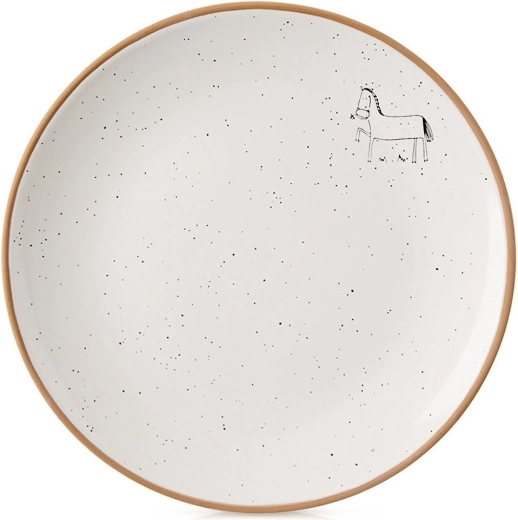 Den stilfulde keramiske lille tallerken er et fremragende valg til både hverdagsbrug og festlige lejligheder. Den beige glasur med let sprøjt og den naturlige kant giver servicen en unik karakter, der nemt kan kombineres med andre dele. Tallerkenen har en klassisk rund form og et dekorativt relief på fladen med hestemotiv.