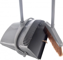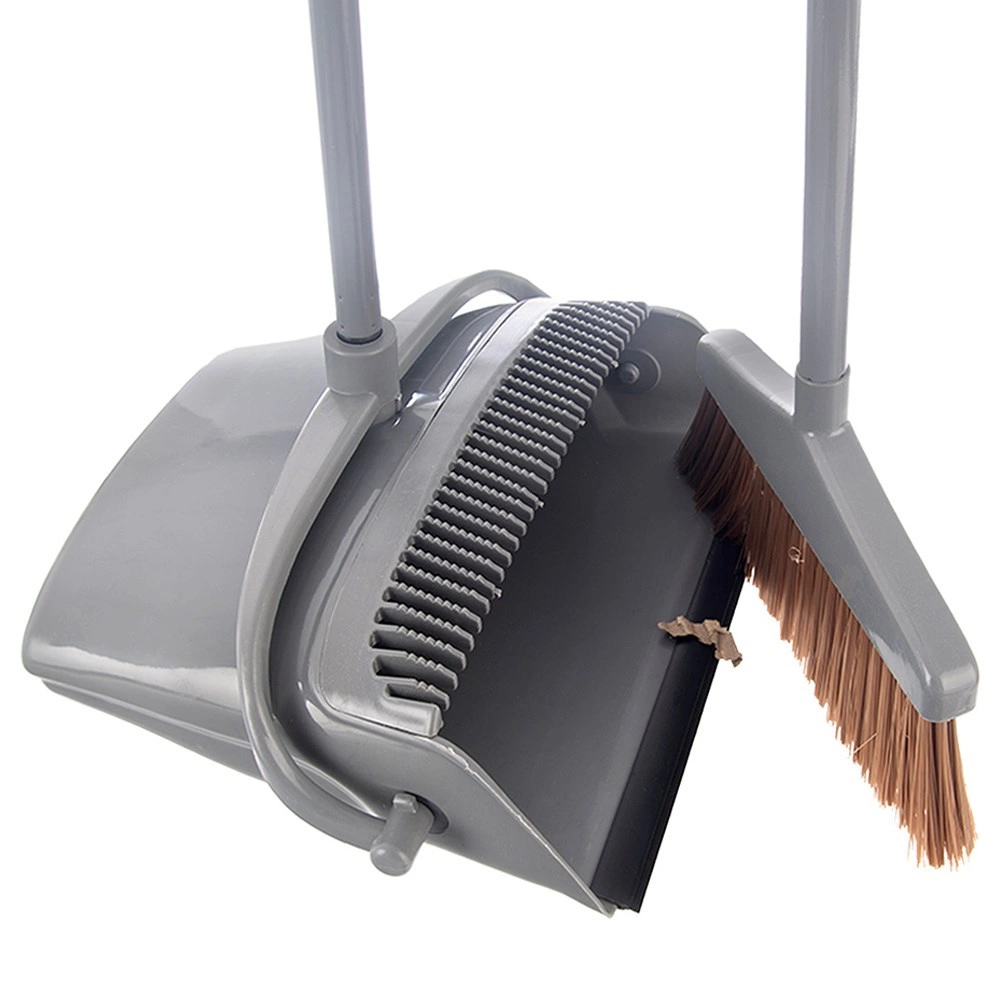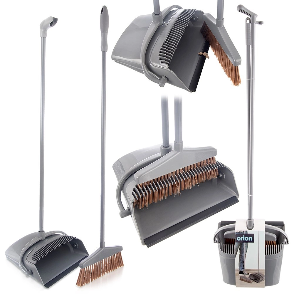 Den integrerede rensekam fjerner nemt hår og støv fra børsterne, så kosten forbliver hygiejnisk og effektiv. Med den smarte clips klikkes kosten fast i fejebakkens håndtag, så sættet sparrer plads ved opbevaring. Det holdbare design i grå passer til hjemmet, kontoret og værkstedet.