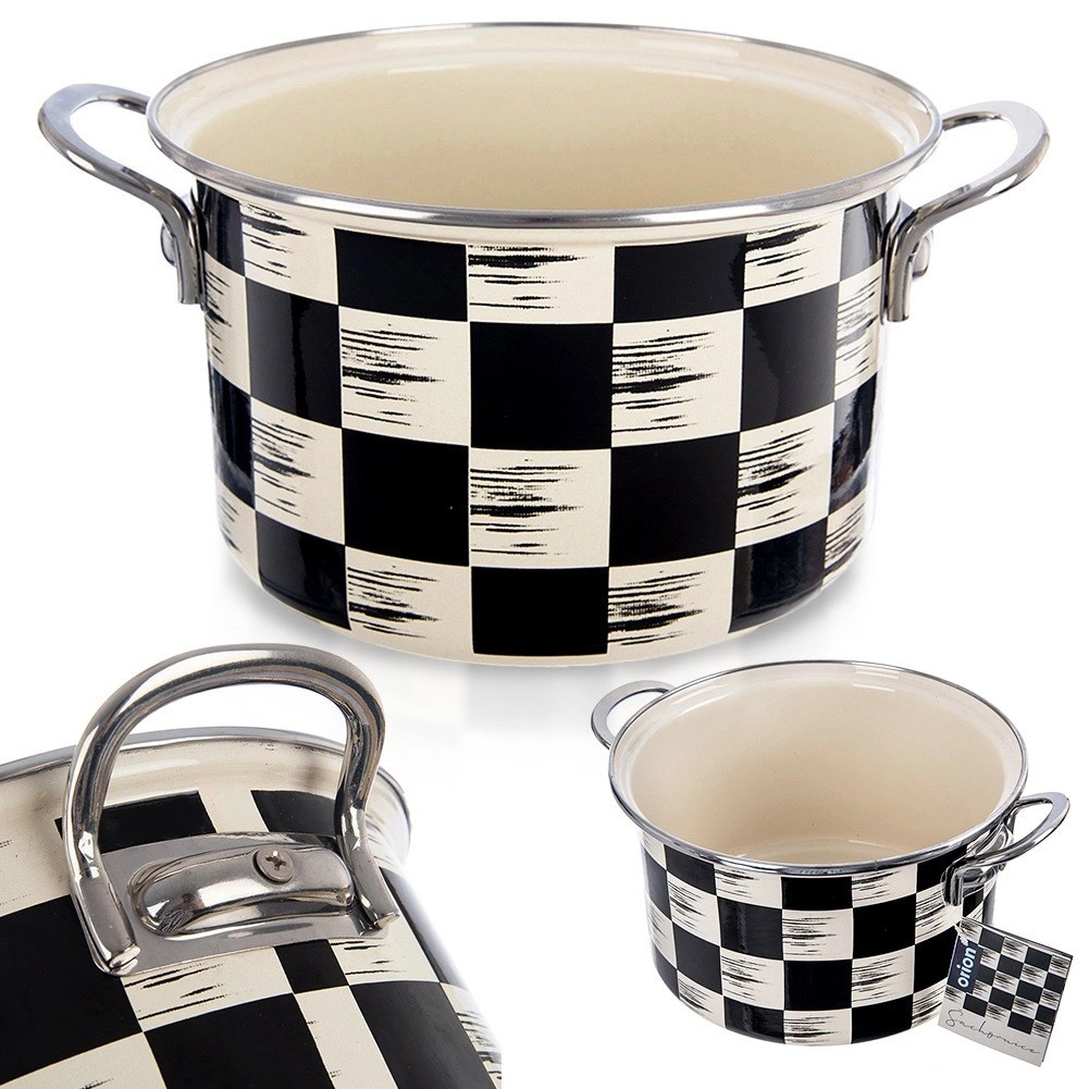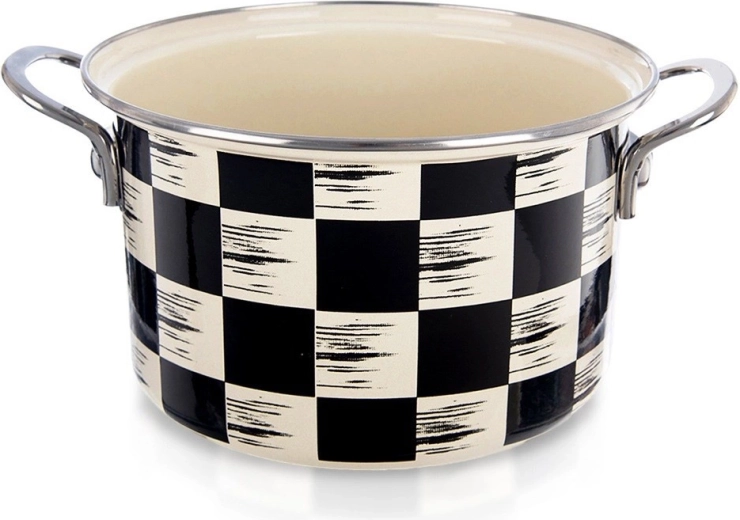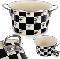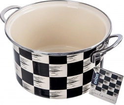 Det elegante Skaktern-design i sort‑beige tern passer flot i både moderne og retro køkkener. Stærke, ergonomiske håndtag giver et sikkert greb ved flytning. Gryden er kompatibel med gas-, el-, glaskeramiske, halogen- og induktionskogeplader, kan bruges i ovn og tåler nemt opvaskemaskine.