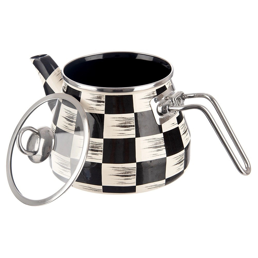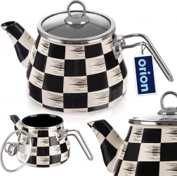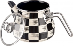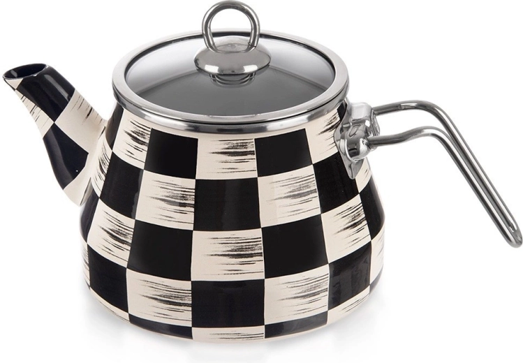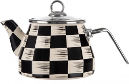 Stilfuld emaljeret kande med volumen 2 l (brugbar 1,5 l) i et elegant skakternet mønster. Byder på hurtig opvarmning af vand, holdbar emaljeret udførelse, glaslåg til kontrol af kogning og kompatibilitet med alle komfurer, inkl. induktion. Kan vaskes i opvaskemaskine, og den metaliske hank gør det nemt at hælde.