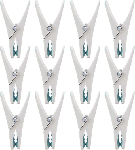Klemmerne har en universel, klassisk form, der kan bruges på alle typer tørrestativer. Bløde grebszoner øger stabilitet og vedhæftning, så tøjet bliver siddende, selv i blæsevejr. Farvekombinationen af hvid og turkis/mentol virker ren og moderne.