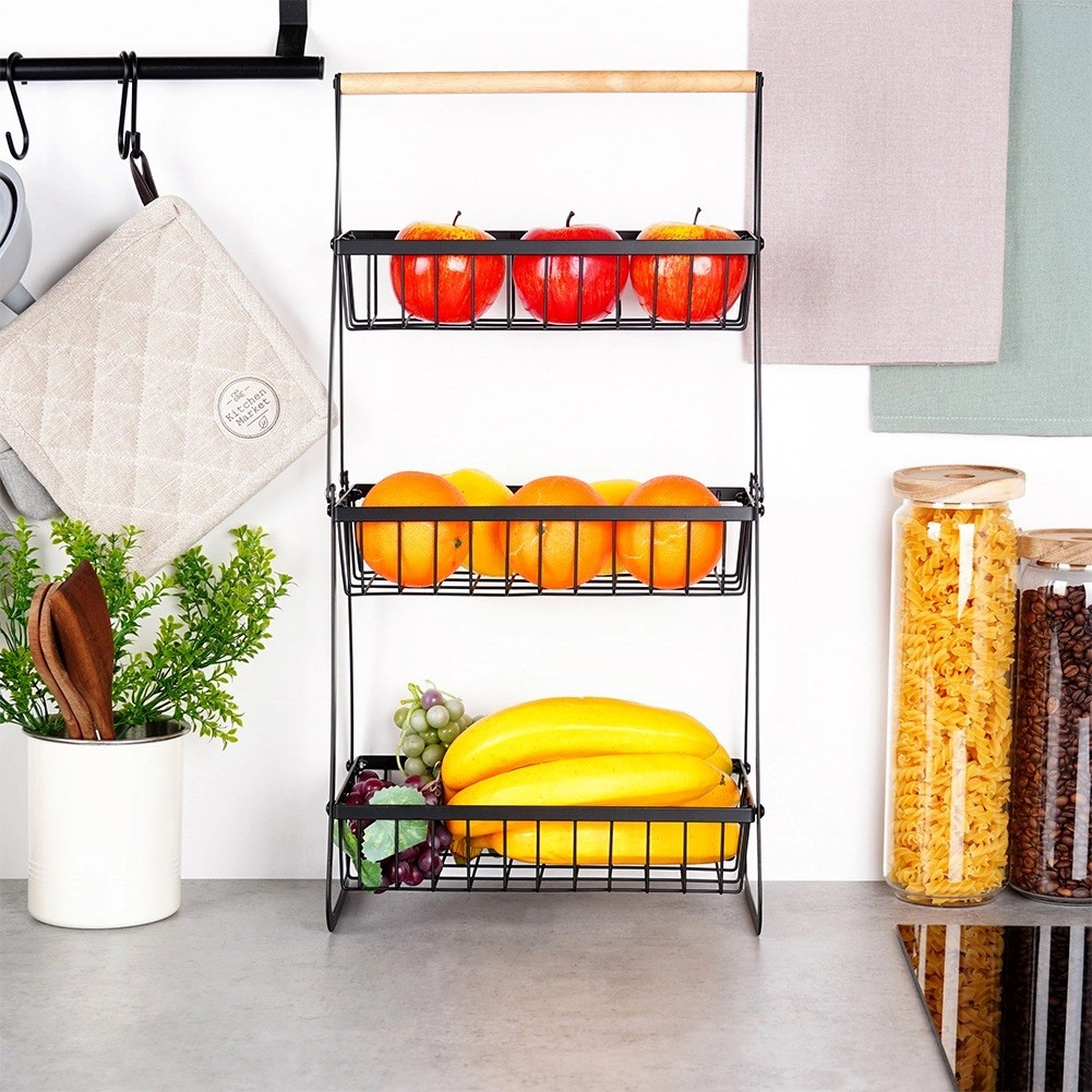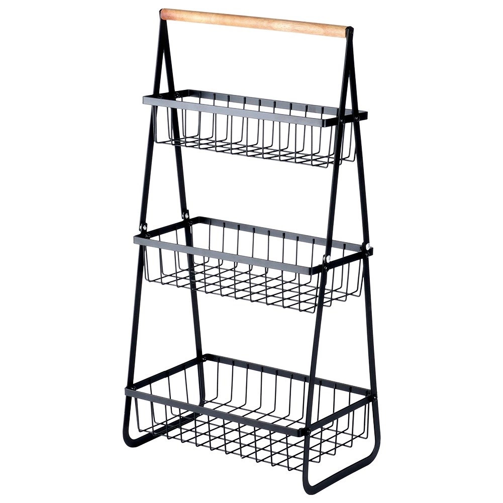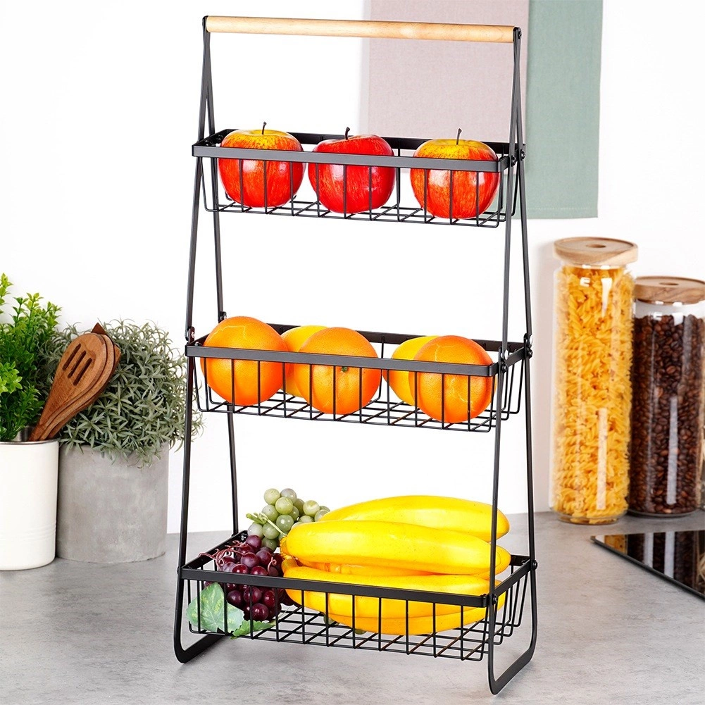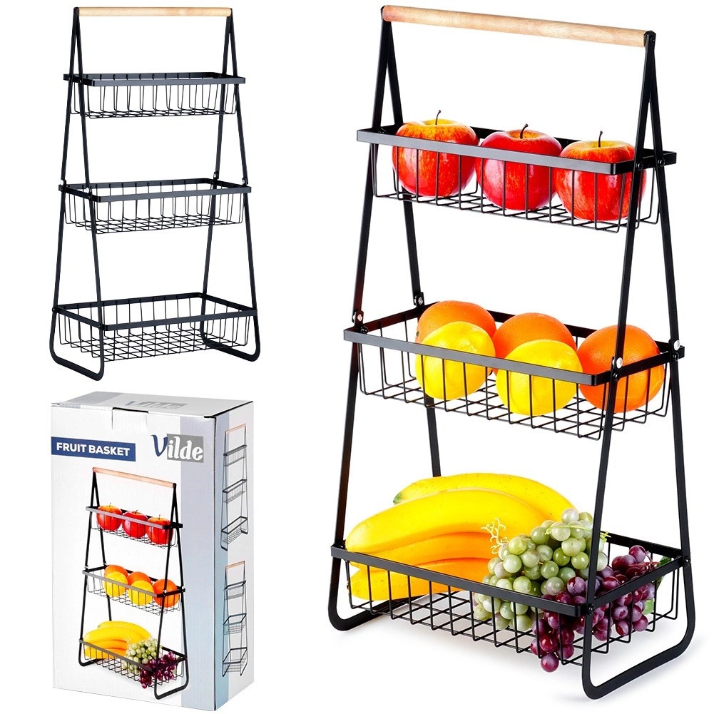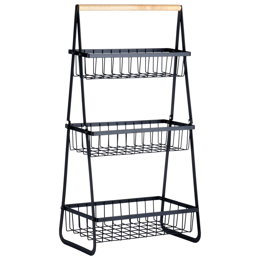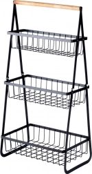 Denne praktiske, fritstående A-ramme-organizer med tre trådkurve er ideel til køkkenbord eller kommode. Den robuste metaludførelse i mat sort og træhåndtaget kombinerer holdbarhed med et moderne industrielt look, der passer til både klassiske og moderne interiører.