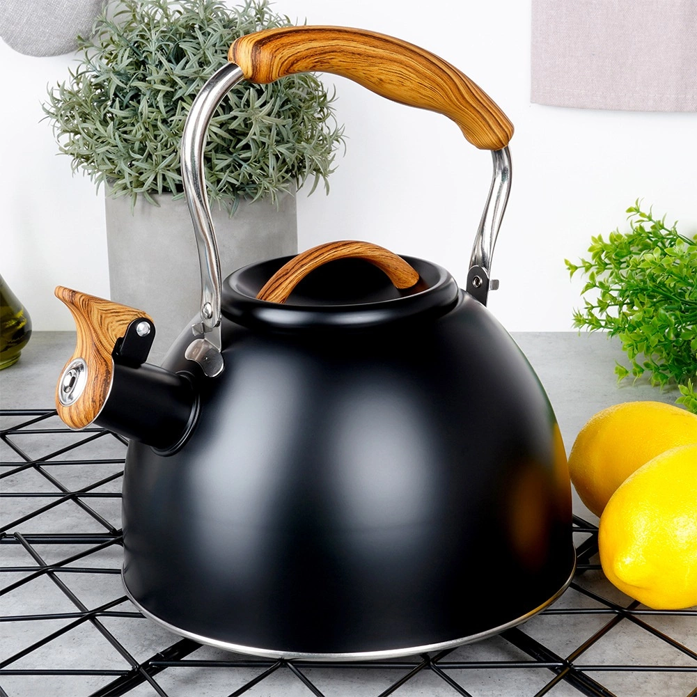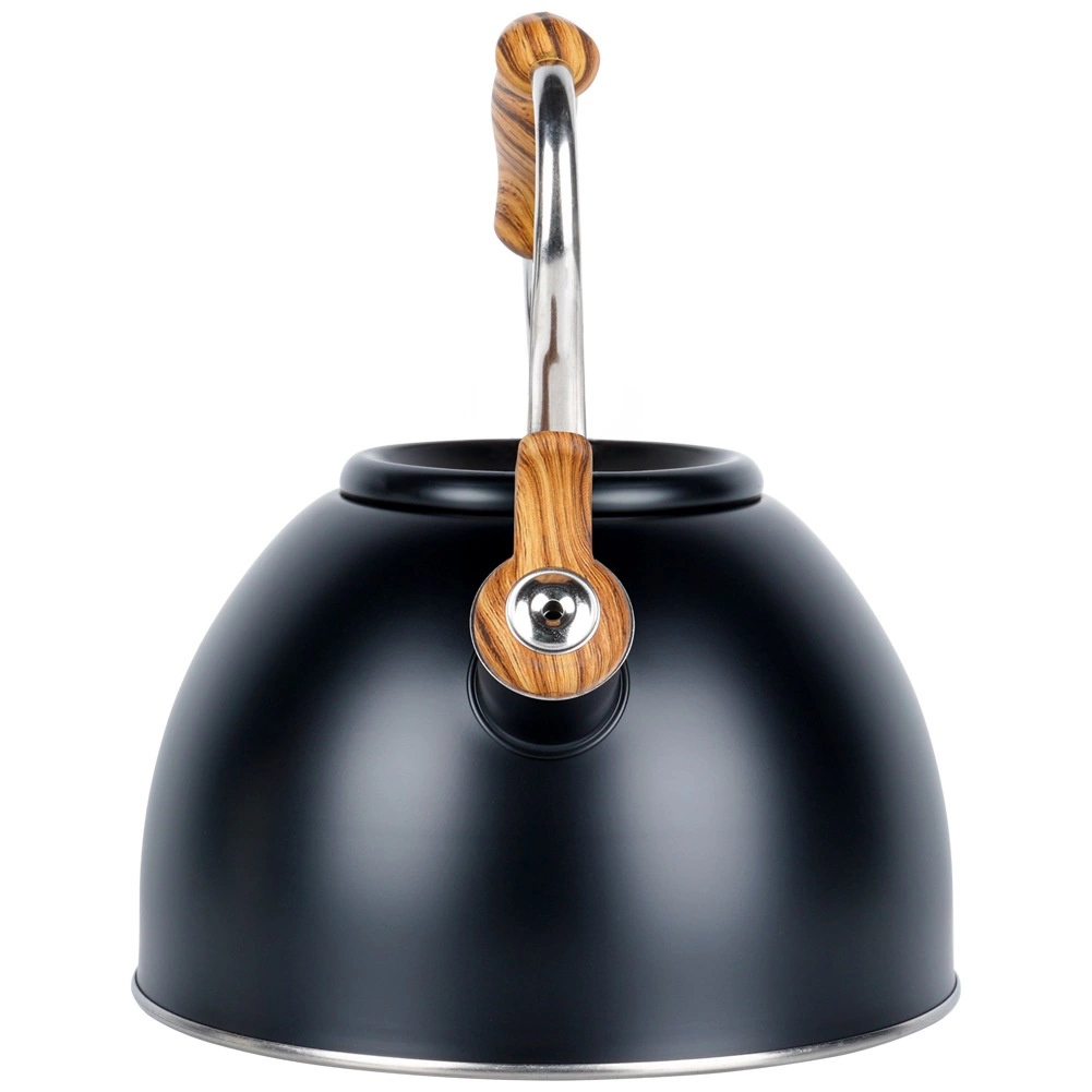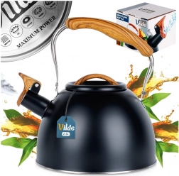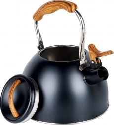 Den elegante mattsorte kedel i rustfrit stål sikrer ren vandsmag og lang levetid. Takket være den brede, stabile bund og effektiv varmeoverførsel varmes vandet hurtigt op selv ved lav effekt. Den opklappelige fløjte, betjent med en vippearm på håndtaget, sørger for sikker og bekvem hældning.