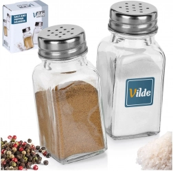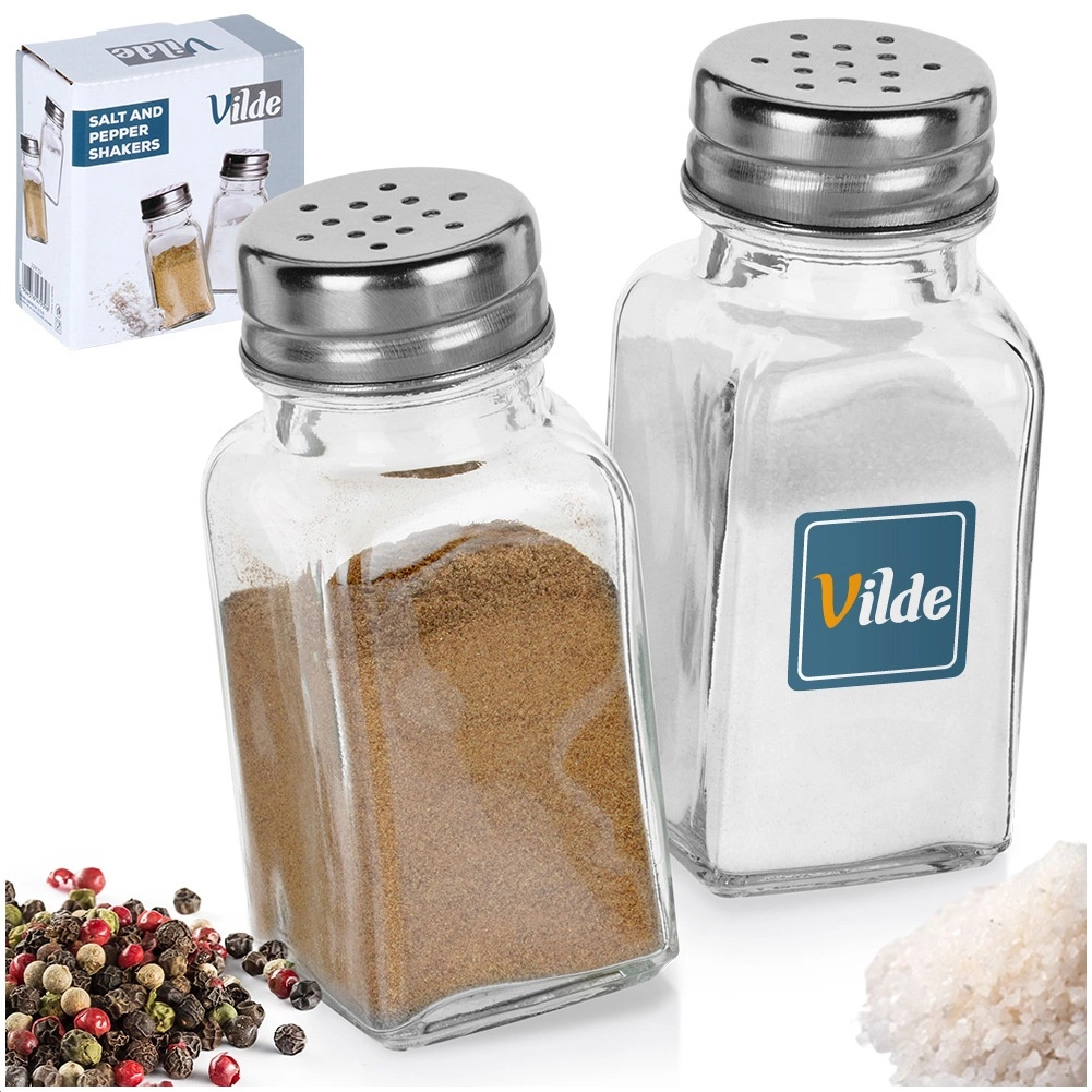 Sættet med to elegante krydderistrøere af klart glas giver overblik ved første øjekast og præcis dosering af salt og peber takket være låg med huller. De metalskruelåg i sølvfarve er robuste og hjælper med at bevare friskhed og aroma i dine krydderier.