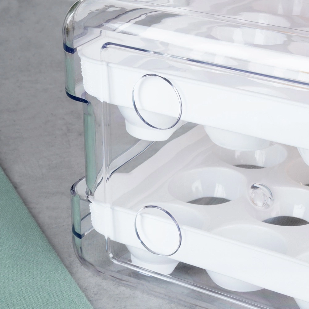 Opbevar op til 40 æg på to niveauer og spar plads i køleskabet. Hvert niveau rummer 20 stk i separate fordybninger for maksimal beskyttelse.