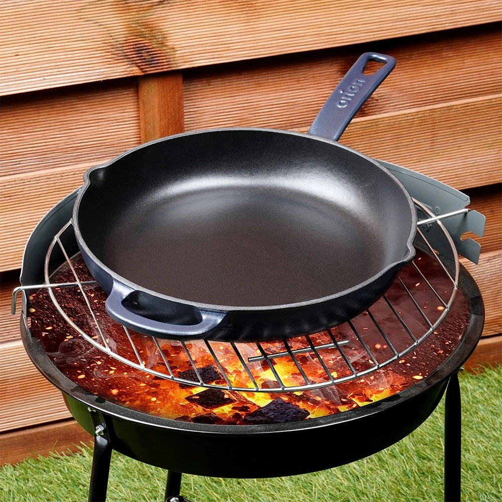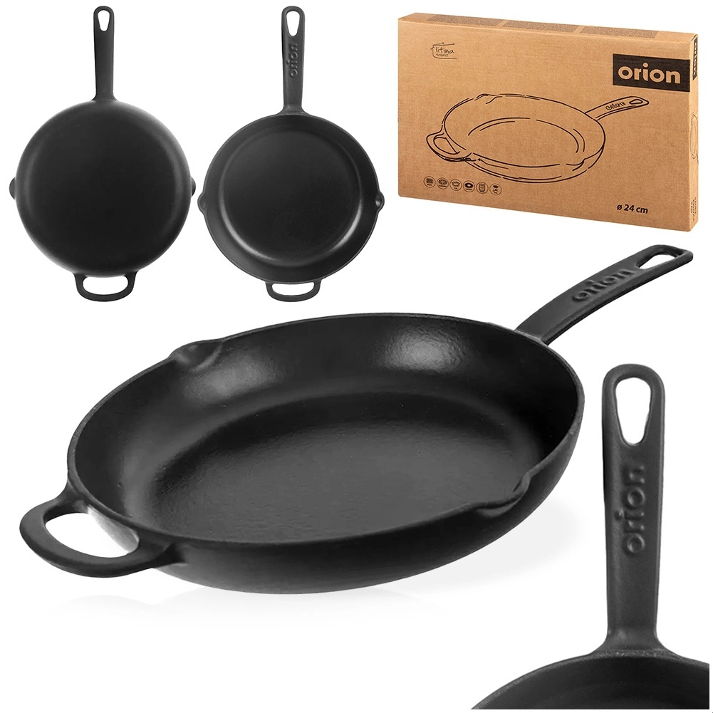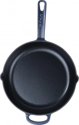 Takket være fremragende varmeakkumulering er panden oplagt til bruning ved høj varme, simring og bagning. Det lange håndtag og hjælpeøret giver et sikkert greb, og de to side-hældetude gør det nemt at hælde saft og olie fra. Velegnet til gas, el, glaskeramik, halogen og induktion samt til ovn. Brug den i køkkenet, på grillen og til camping.