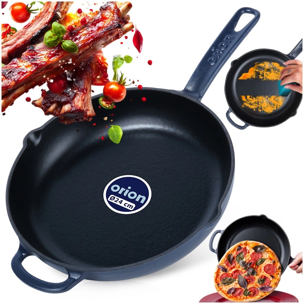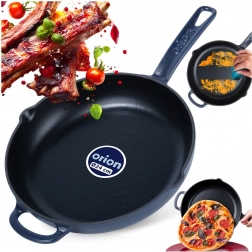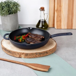 Denne robuste støbejernspande er ideel til daglig madlavning – fra hurtig sautering af grøntsager og saftige bøffer til gratinering i ovn. Den sorte emaljerede overflade gør både tilberedning og servering lettere og forenkler samtidig rengøringen. Den blå yderside giver dit køkken stil, og det holdbare støbejern sikrer stabile resultater.
