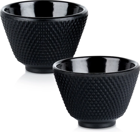 Sættet med to støbejernskopper på 60 ml er designet til en autentisk teoplevelse. Støbejernskonstruktionen fordeler varmen jævnt og holder den længe, mens den emaljerede inderside bevarer drikkens smag, forhindrer optagelse af dufte og gør vedligeholdelsen lettere.