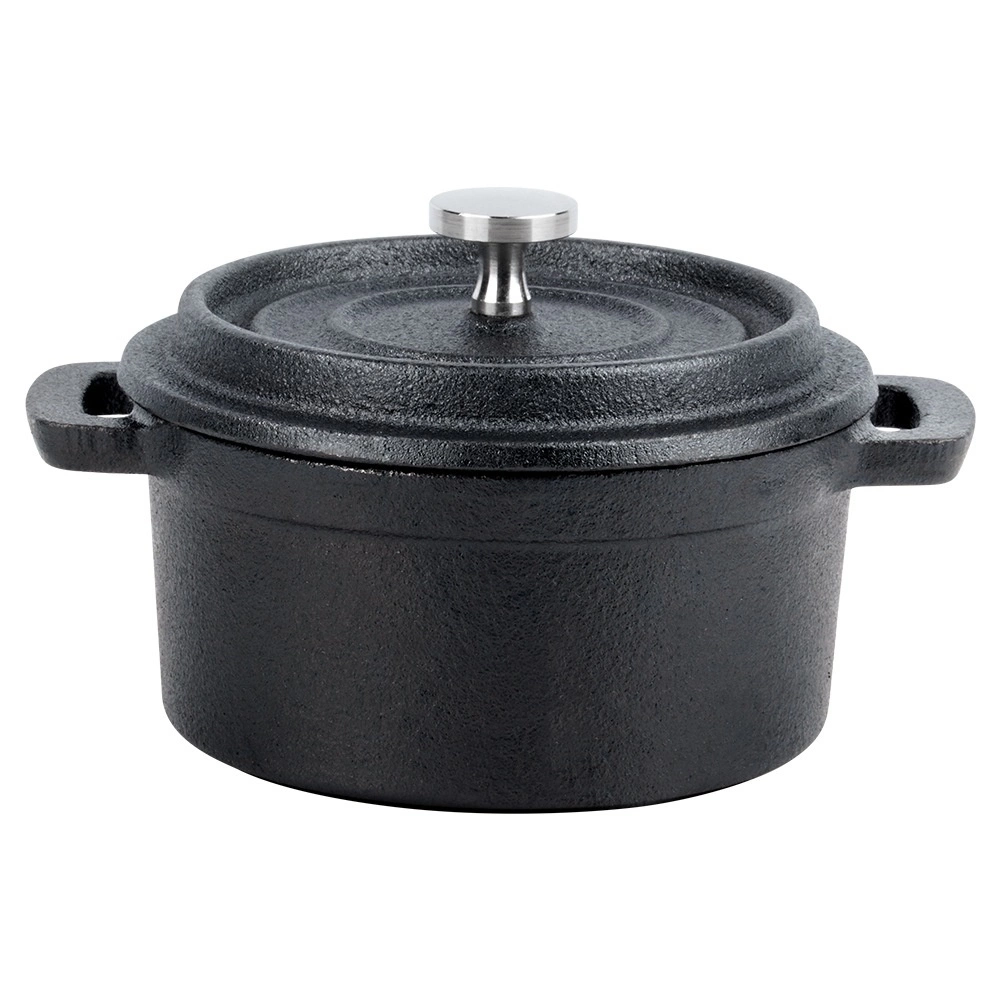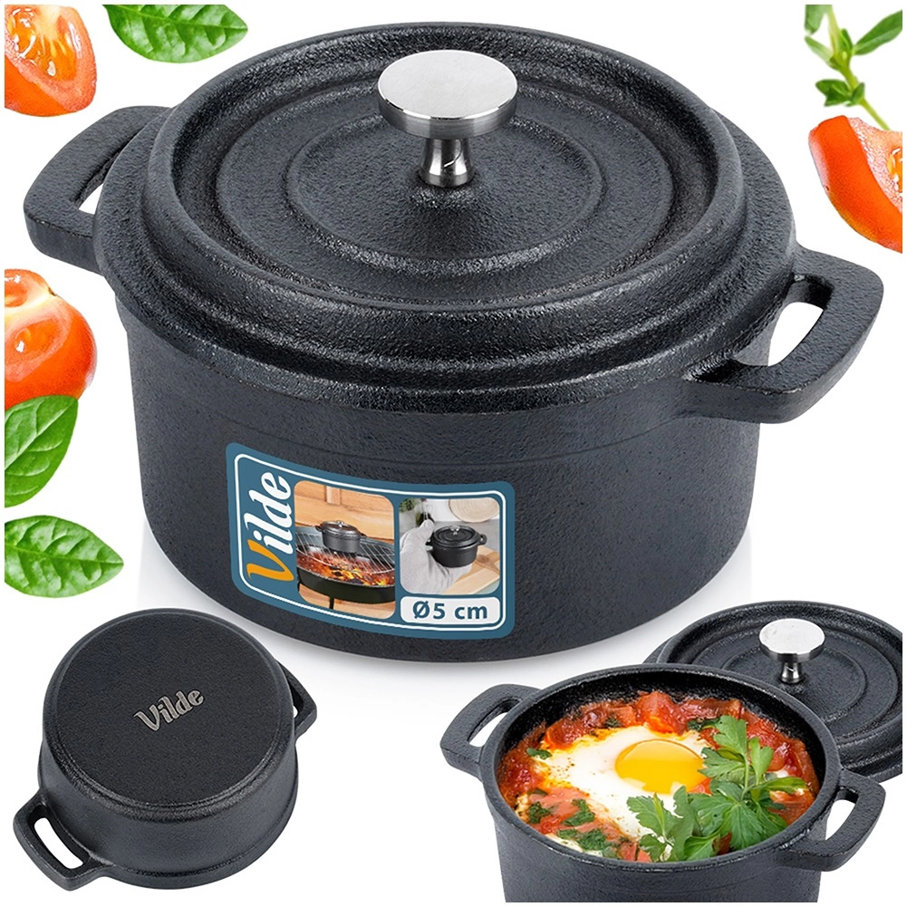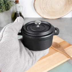 Denne miniaturegryde i støbejern, udformet som en cocotte, imponerer med sin holdbare konstruktion og alsidighed. Den er velegnet til komfur, direkte over bål og i ovn, så du nemt kan tilberede og servere supper, saucer, gratiner, grøntsager og desserter.
