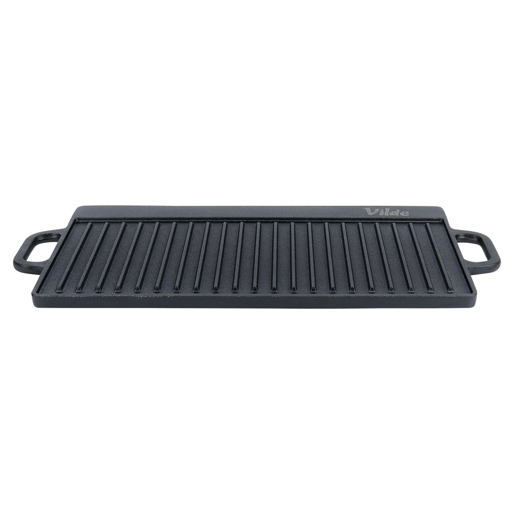 Oplev alsidigheden ved CAST LINE-støbejernspladen: den ene side er glat til pandekager, æg eller skaldyr, den anden riflet for markante grillstriber på steaks, grøntsager og pølser. Det massive støbejern giver fremragende varmeakkumulering og jævn opvarmning af hele overfladen, hvilket giver saftige resultater med minimal fastbrænding.