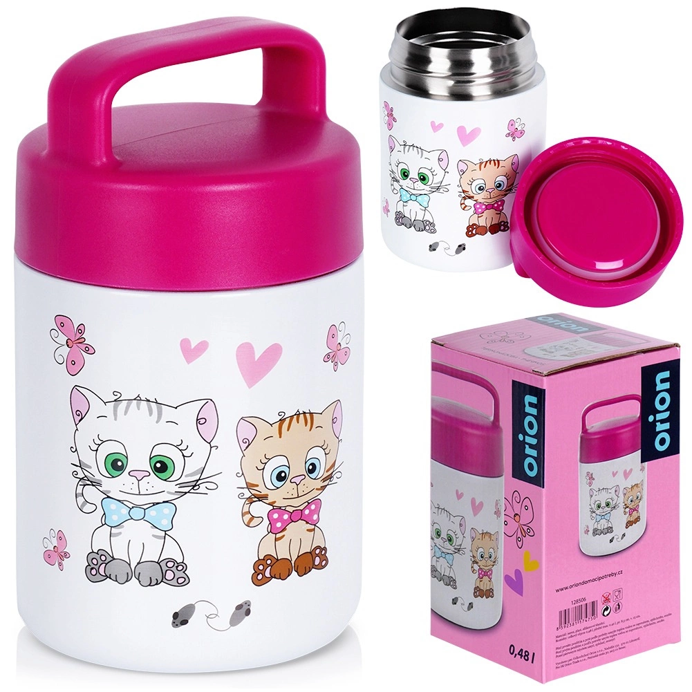 Bær termosen nemt takket være den robuste hank. Det glade killingemotiv underholder børn og støtter sunde snacks.