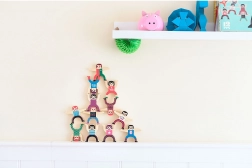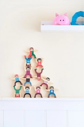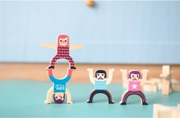 Byg dit eget tårn af akrobater og test både fingerfærdighed og fantasi. De farverige træfigurer kan stables i mange stabile og modige positioner, hvilket gør legetøjet til et ideelt valg til fælles leg og læring af balance.