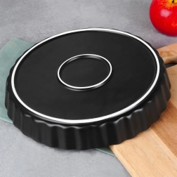 Denne runde tærteform er ideel til hjemmebagte tærter, quiche, kager og gratinretter. Kvalitetskeramik med mat sort overflade sikrer stabil varmeledning og jævn strålevarme, hvilket giver jævnt gennembagt dej og et flot gratineret fyld.