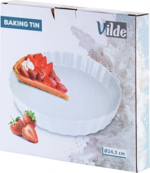 Denne runde tærteform med dekorativ bølget kant skaber en smukt sprød kant og en ideel fordybning til fyld. Kvalitetskeramik sikrer stabil varmeydelse og jævn bagning af dejen uden fastbrænding.