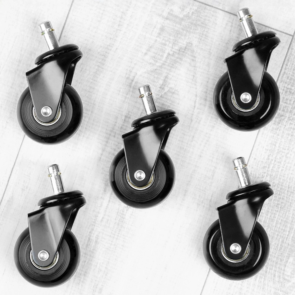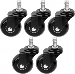 Det praktiske sæt med fem reservehjul til kontorstol giver støjsvag og jævn bevægelse på hårde gulve. Gummioverfladen minimerer støj og vibrationer og beskytter samtidig gulvene mod ridser. Med en hjuldiameter på 50 mm og en metal-tap på 10 mm passer de nemt til et bredt udvalg af stole.