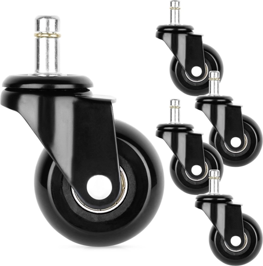 Monteringen tager kun et øjeblik – helt uden værktøj: træk det gamle hjul ud og sæt det nye i. Hjulene er designet til daglig brug, har glat løb med lejer og en robust konstruktion for lang levetid. Velegnet til både kontorer og hjemmearbejdspladser.