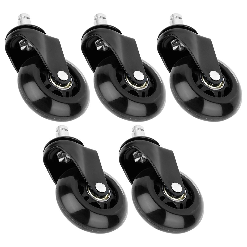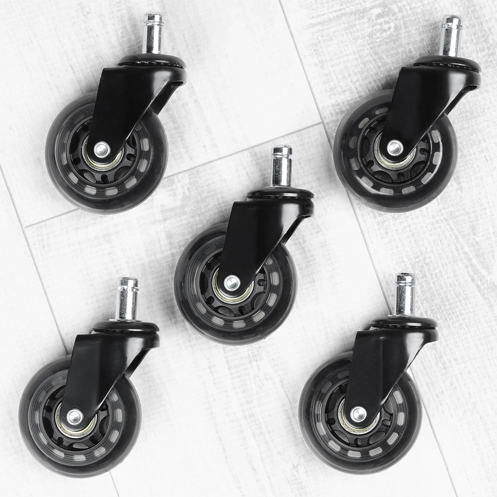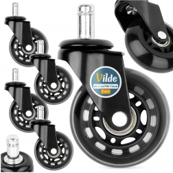 Standard hjuldiameter på 63 mm og 11 mm tap giver bred kompatibilitet med de fleste kontorstole (undtagen IKEA-modeller). Installationen klares på et øjeblik – uden værktøj, træk blot de gamle hjul ud og skub de nye i.