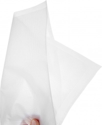 Hold fødevarer op til 5× længere friske med pålidelige vakuumposer. Den ene side er glat, den anden struktureret (præget) for hurtig og ensartet udsugning af luft og perfekt forsegling. Det transparente design gør det nemt at kontrollere indholdet og organisere forsyninger i både spisekammer og fryser.