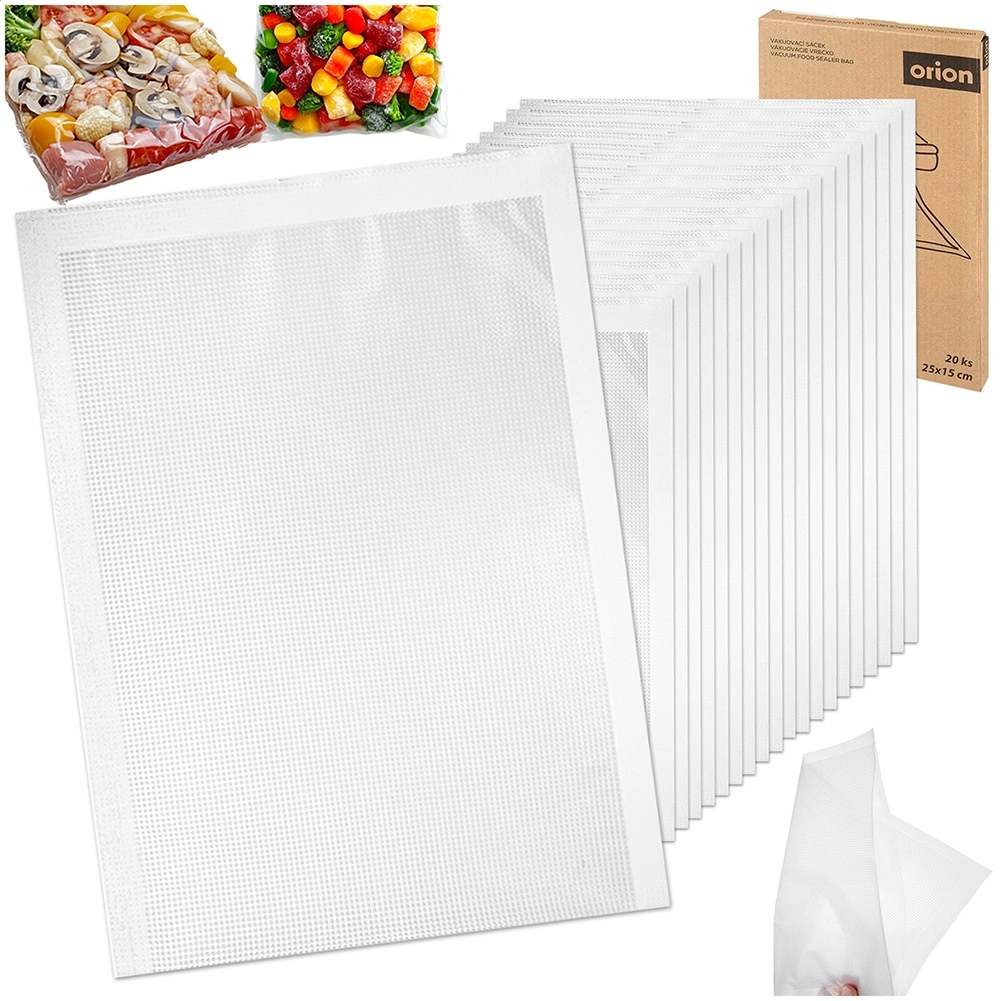 Poserne er lavet af slidstærk nylonfilm, egnet til temperaturer fra −20 °C til +110 °C – ideelle til frysning, marinering og sous-vide. De kan skånsomt genbruges, hvilket sparer både pengepung og miljø. Kompatible med de fleste vakuumpakkere til hjemmet.