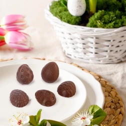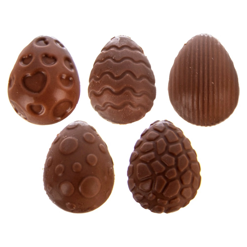 Forskellige teksturer og mønstre på æggene giver hjemmelavede praliner et professionelt udseende og en festlig atmosfære.