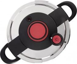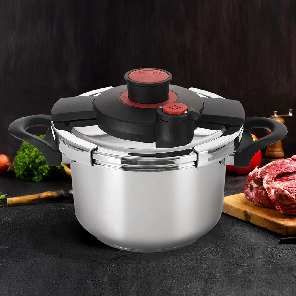 Gryden understøtter trykkogning med 2 programmer og dampudløsningsfunktion, og den har en sikkerhedsventil for tryg anvendelse. Den er kompatibel med gas-, el-, glaskeramiske, halogen- og induktionskogeplader. Selve gryden kan gå i opvaskemaskinen (uden låg), og de robuste håndtag og betjeningsdele i slidstærk plast sikrer et komfortabelt greb.