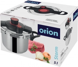 Trykkogeren STORM 5 l i premium rustfrit stål gør madlavningen hurtigere og bevarer mere smag og næring. Takket være den automatiske drejelås låses låget sikkert uden anstrengelse, mens den dobbeltlagede sandwichbund lagrer og fordeler varmen jævnt. Brugsvolumenet på 3,3 l er ideelt til daglig madlavning.