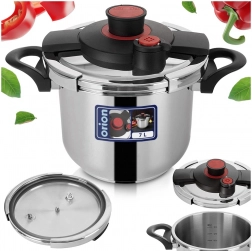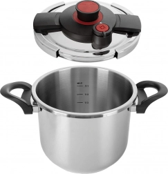Praktisk trykkoger i rustfrit stål med volumen 7 l til hurtig og energibesparende madlavning. Takket være automatisk låsning af låget, to madlavningsprogrammer og en sikkerhedsventil tilbereder du supper, gullash, kød og grøntsager hurtigere, mere velsmagende og med lavere energiforbrug. Det kraftige sandwichbund fordeler varmen fremragende og er egnet til alle typer komfurer, inklusive induktion.