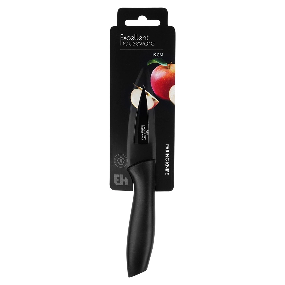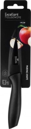 Opdag en praktisk skrællekniv, der bliver din daglige hjælper. Den samlede længde på 19 cm og en 9 cm klinge giver ideel kontrol ved skrælning, skæring og pyntning af frugt og grøntsager. Rustfrit stål med mat sort overflade sikrer korrosionsbestandighed og langvarig skarphed.