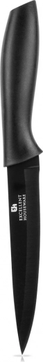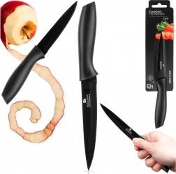 Opdag en pålidelig køkkenkniv, der klarer præcise snit, hakning af krydderurter og tilberedning af kød. Klingen i rustfrit stål med sort, mat overflade giver et glidende snit og modstandsdygtighed over for korrosion. Det ergonomiske håndtag sikrer et behageligt og sikkert greb selv ved længere tids arbejde i køkkenet.
