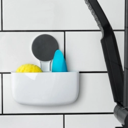 Denne alsidige brusehylde med stor sugekop giver øjeblikkelig og sikker opbevaring af kosmetik og tilbehør uden behov for boring. Takket være de kompakte mål 16 × 7 × 17 cm passer den i ethvert badeværelse, og dens hvide, let rengørlige plast passer til både moderne og klassiske interiører.