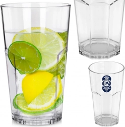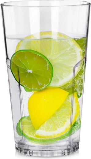 Let og holdbar plastikkop med en kapacitet på 370 ml til daglig brug hjemme og på farten. Fremstillet af kvalitetsakrylat, er den uknuselig, genanvendelig og tåler opvaskemaskine. Det elegante, klare udseende imiterer glas naturtro, men er sikkert og ideelt til vand, lemonade, juice, drinks og iste.