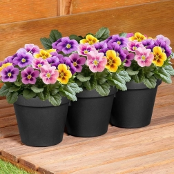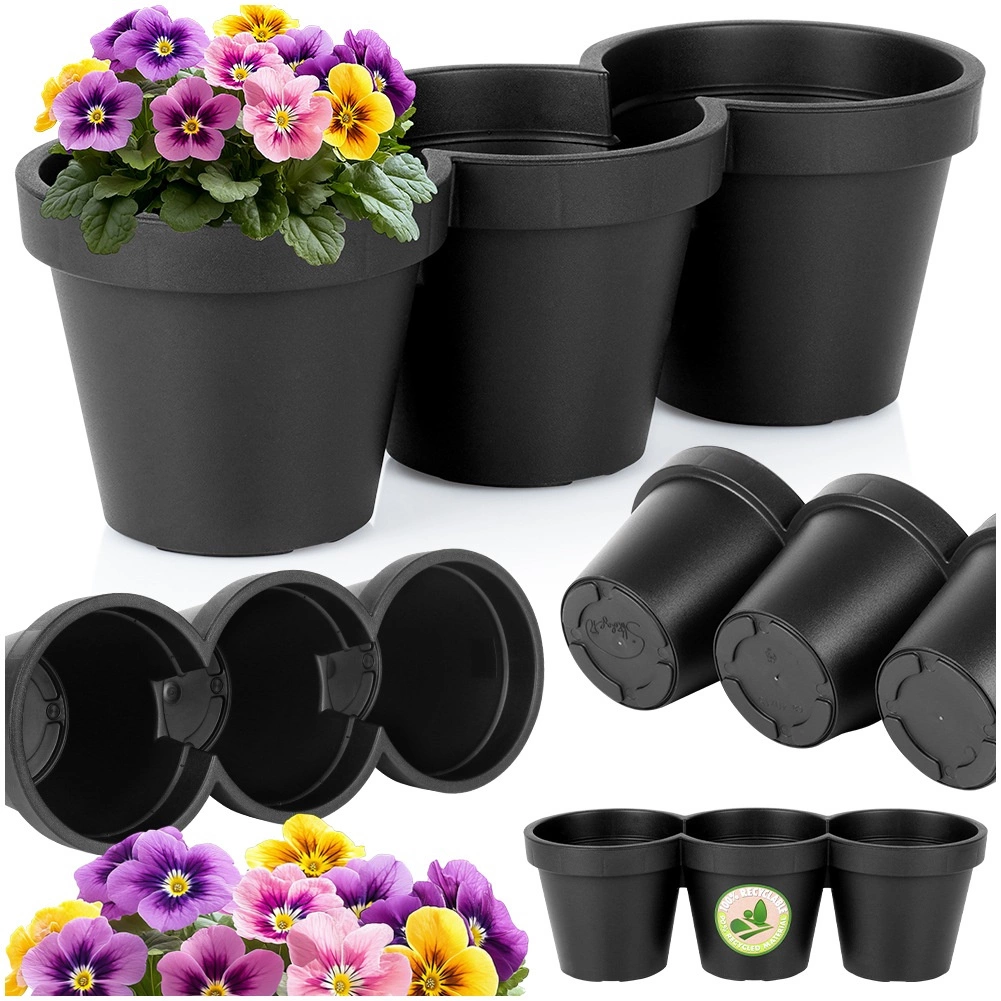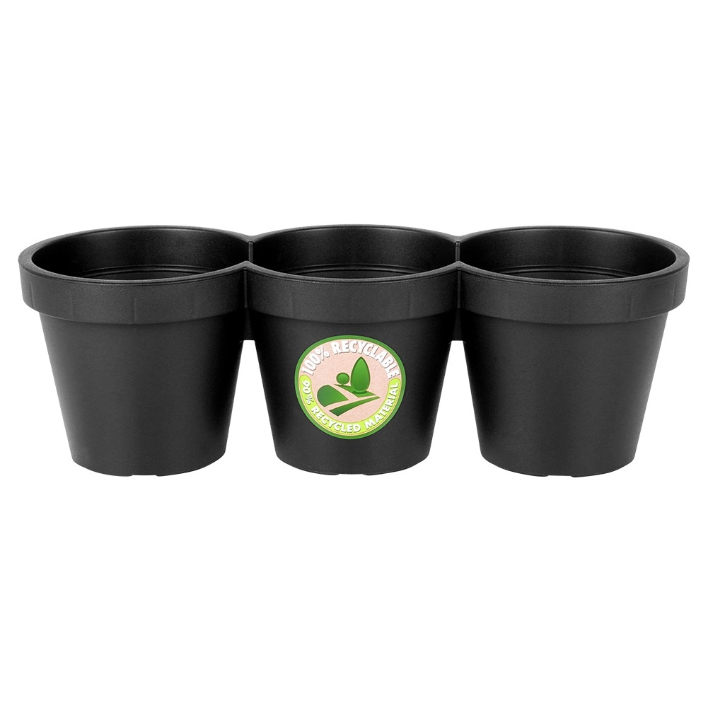 Denne praktiske tredobbelte blomsterkrukke kombinerer tre runde beholdere (hver ca. 14,5 cm) til én kompakt enhed med en længde på 39,5 cm. Den giver dig mulighed for at dyrke flere plantetyper på ét sted og samtidig bevare et ensartet og rent udtryk i beplantningen.