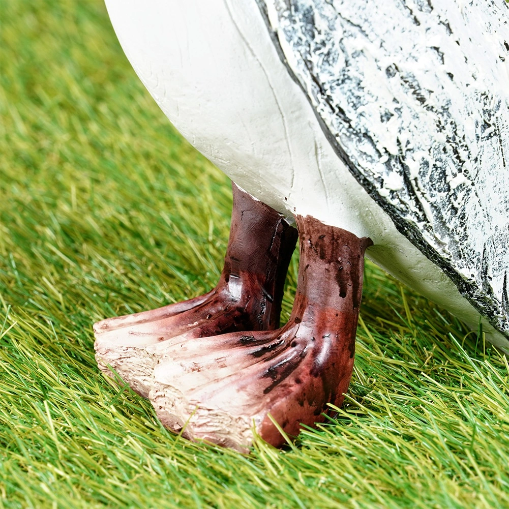 Omhyggeligt gengivne fjer, næbbets form og den håndlignende bemaling gør figuren til et markant dekorativt element i enhver udendørsindretning.