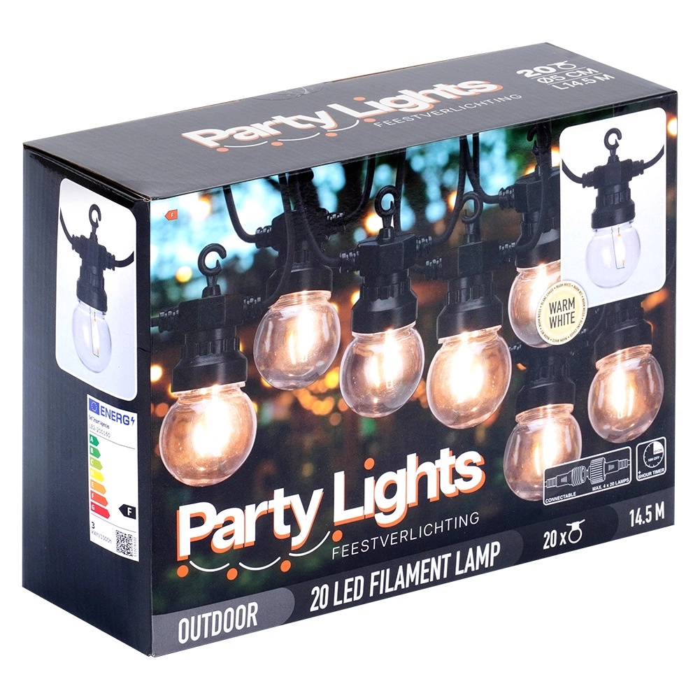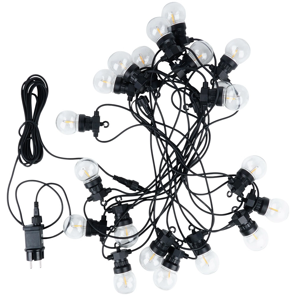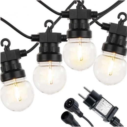 Tyve klare LED-pærer skaber en behagelig, varm glød, ideel til aftenhygge, fester og bryllupsdekorationer. Jævne mellemrum på 50 cm sikrer ensartet belysning langs hele strækningen.