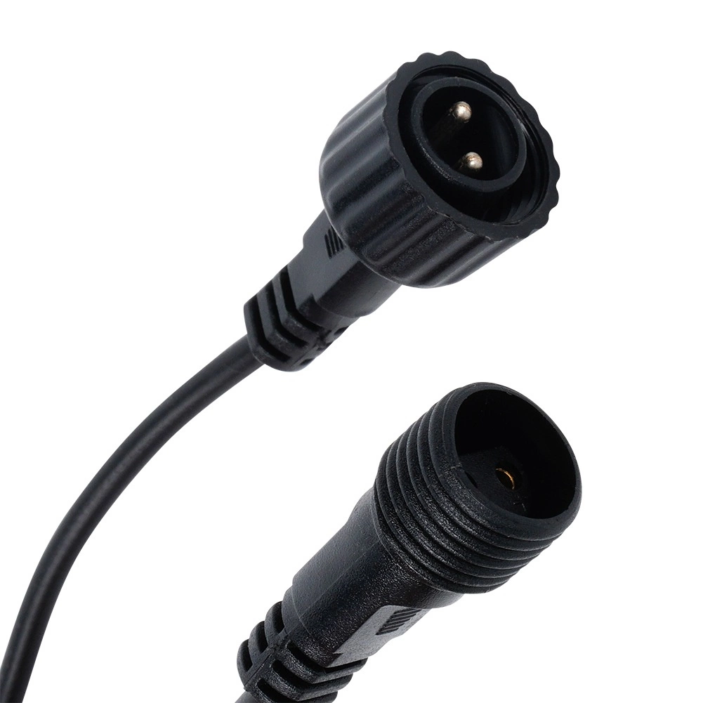 IP44-beskyttelse og robuste stik med låseskrue klarer almindeligt vejr. Kroge på hver fatning gør det nemt at hænge den på hegn, pergolaer eller mellem træer.