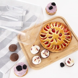 Det klare låg med integreret greb beskytter retterne mod støv og insekter og holder dem friske længere – ideelt til servering både inde og ude.