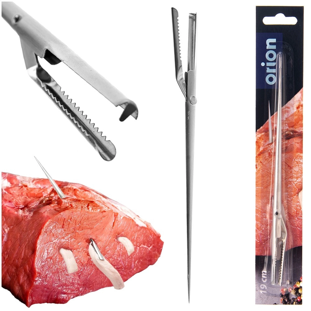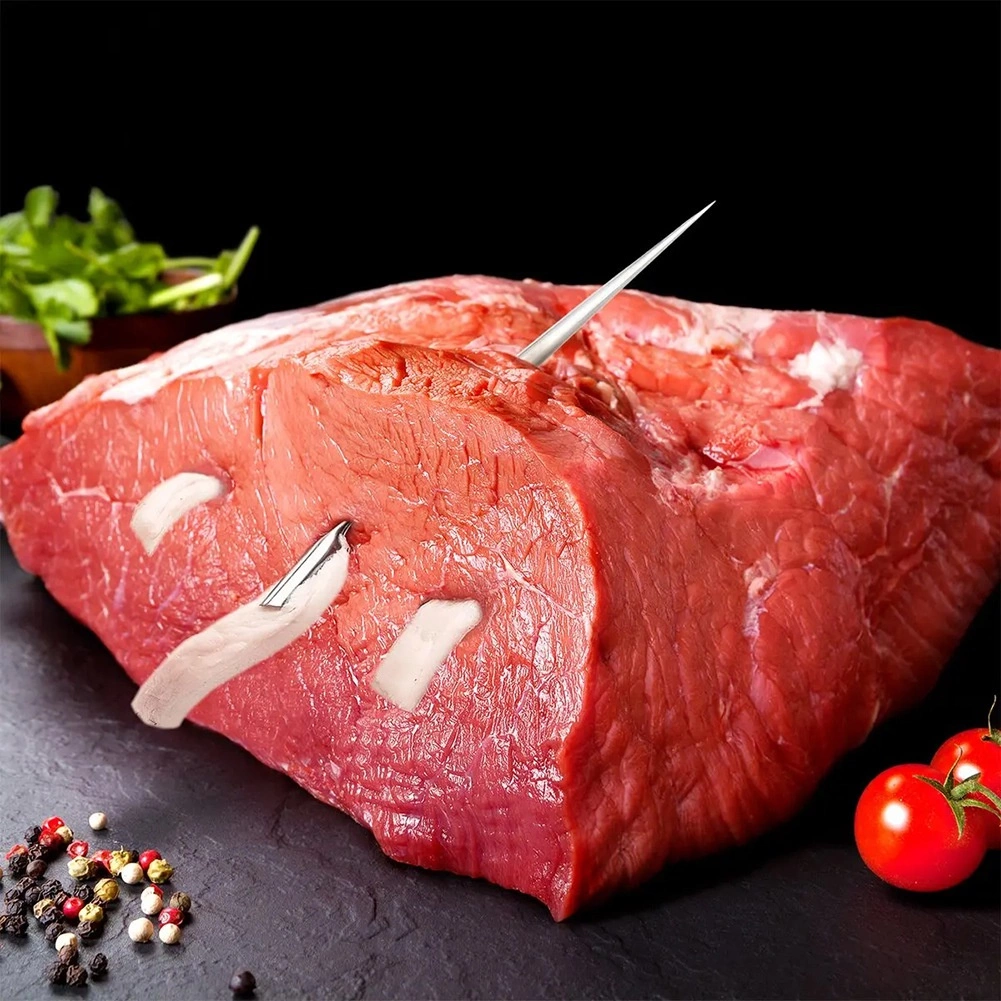Den lange, slanke nål med glat gennemtrængning gør det nemt at føre bacon eller grøntsager dybt ind i kødet og sikrer en jævn fordeling af ingredienserne.