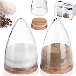 Sættet indeholder to krydderistrøere til salt og peber. Den gennemsigtige krop giver øjeblikkeligt overblik over mængden, mens bøgelåget med silikonepakning holder aromaen inde og beskytter indholdet mod fugt. Takket være den lille doseringsåbning i spidsen strør du præcis så meget, du har brug for – uden unødigt spild.