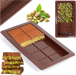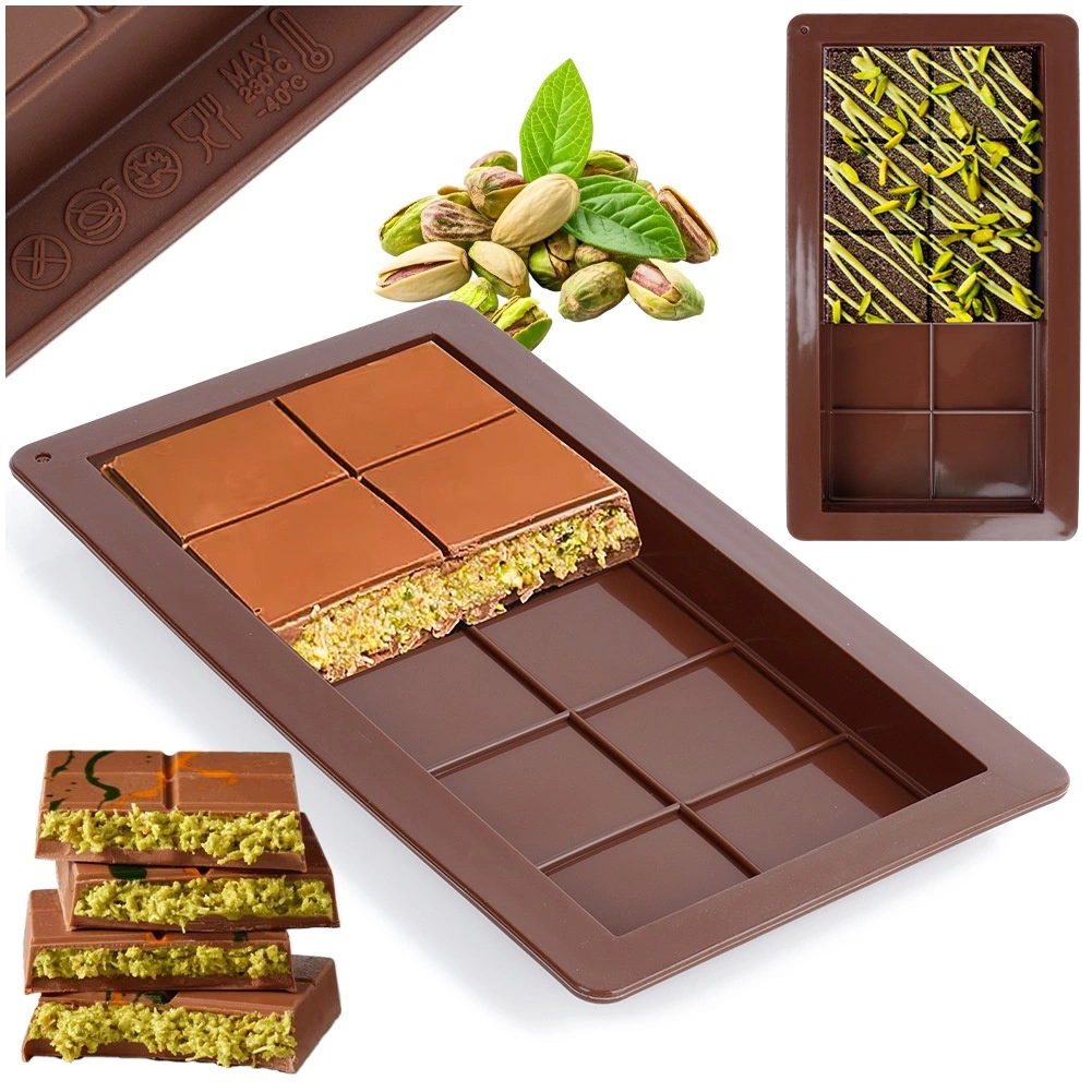 Denne kvalitets-silikoneform gør det muligt at lave perfekt formede chokoladeplader – fra klassisk mælkechokolade til varianter med nødder, tørret frugt eller krydderier. Fleksibel og non-stick silikone sikrer rene former og problemfri udtagning uden behov for at smøre.