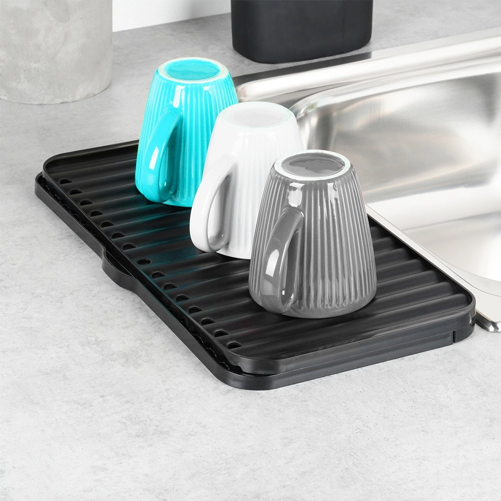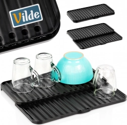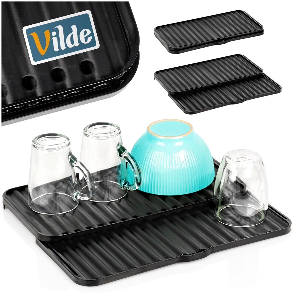 Den udtrækkelige drypmåtte er en smart løsning til tørring af krus, glas, skåle og mindre tallerkener. Takket være de to glidende dele kan du nemt forstørre tørrefladen efter behov, mens de forhøjede ribber sikrer luftcirkulation og hurtig afledning af vand.