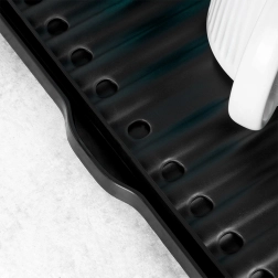 Den riflede overflade og drænhullerne fremskynder tørringen og forhindrer vand i at samle sig under servicen.