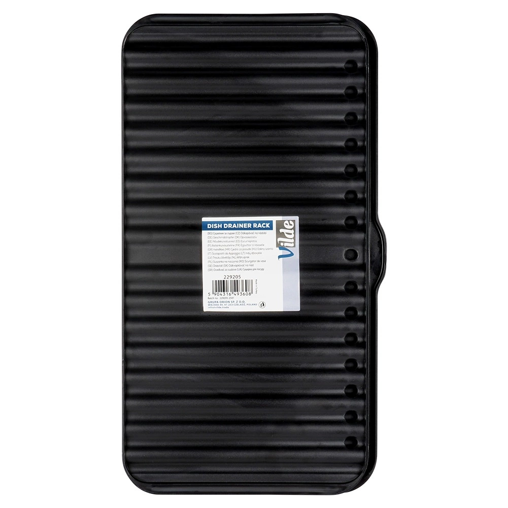 Den øverste del har drænhuller, mens den nederste bakke har en tud til nem og kontrolleret udtømning af overskydende vand i én retning. Det robuste design i kvalitetsplast er nemt at rengøre og passer elegant ind i ethvert køkken i sin sorte farve.