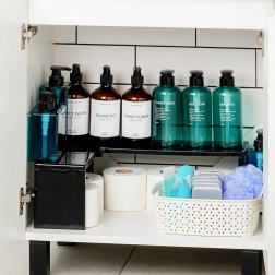 - Maksimerer opbevaringsplads – deler hylde/bordplade i to niveauer.